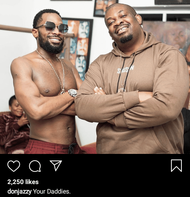 Don Jazzy took to his Instagram page and reciprocated the gesture. He posted a photo of themselves and wrote; “Your Daddies”.