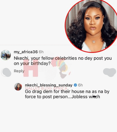 “Go drag them for their house na as na by force to post person….jobless witch.” Nkechi replied.