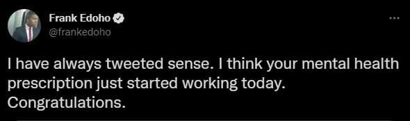 “Your mental health prescription just started working today” – Frank Edoho mercilessly ridicules troll