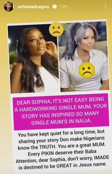 “Your story has inspired a lot of single mothers in Naija” – Uche Maduagwu praises Sophia Momodu