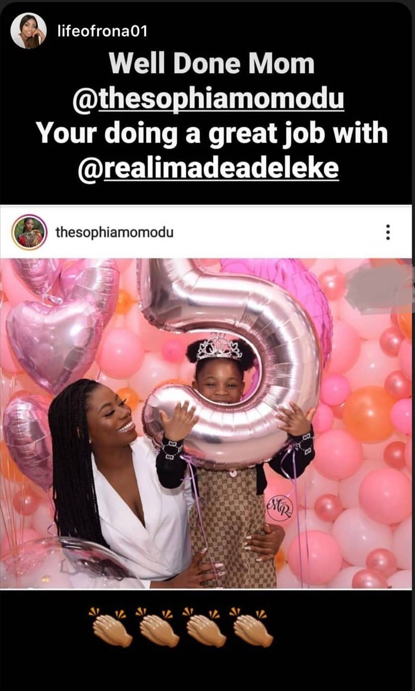 Sharon Ademefun, the sister to award winning singer, David Adeleke has taken to Instagram to shower praises on Sophia Momodu.