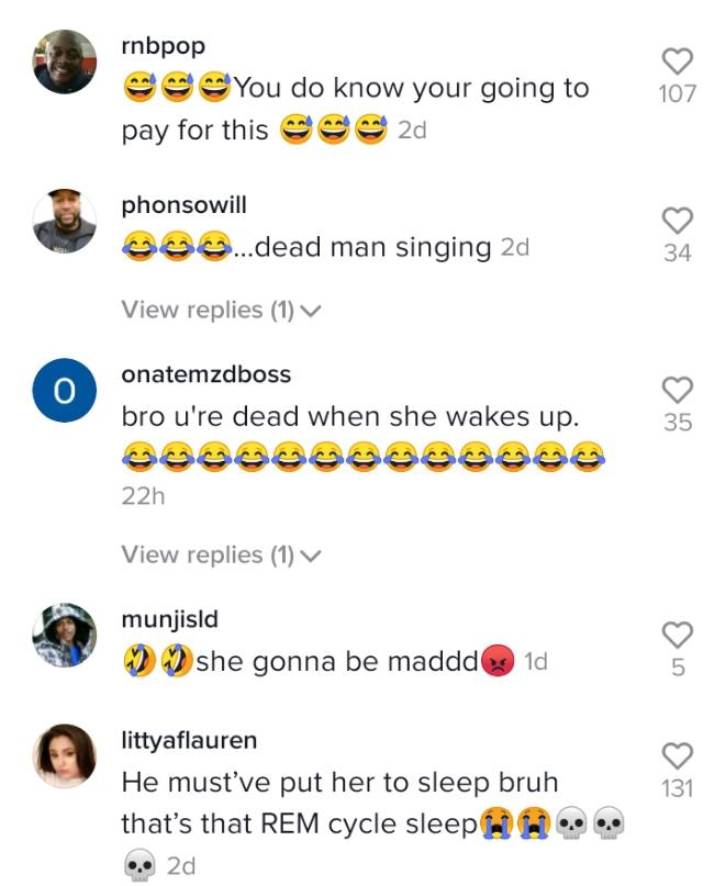 “You’re going to be dead when she wakes up” – Reactions as man shares video of his girlfriend sleeping