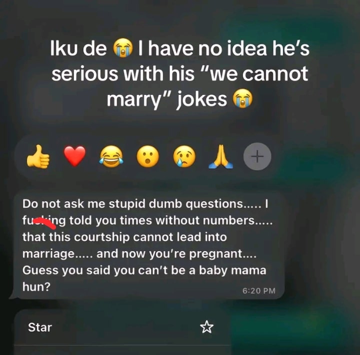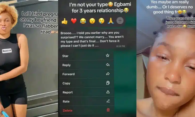 “You’re not my type and we cannot marry” – Lady gets shocking replies as she pranks boyfriend with pregnancy, their 3-year relationship crashes