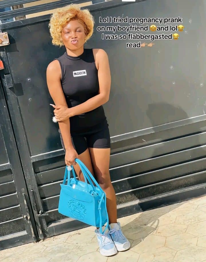 A lady got an unexpected reply from her boyfriend after pulling off a pregnancy prank on him to see how he would react to the news.