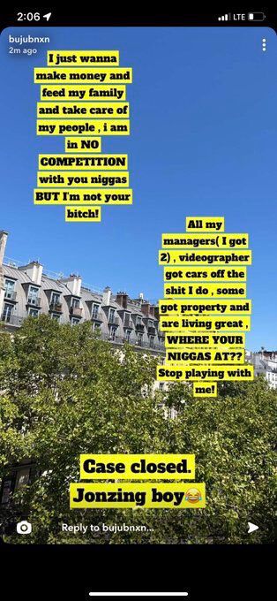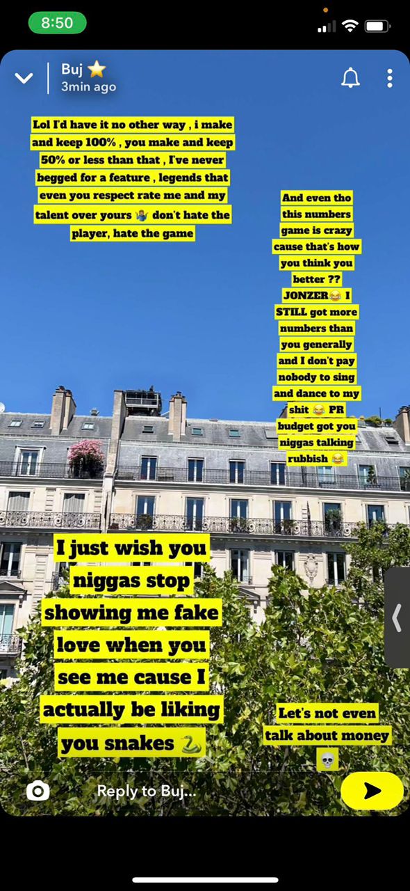 In response to this, BNXN who wasn’t pleased by this statement took to his Snapchat handle where he penned a lengthy note as regards the jab.