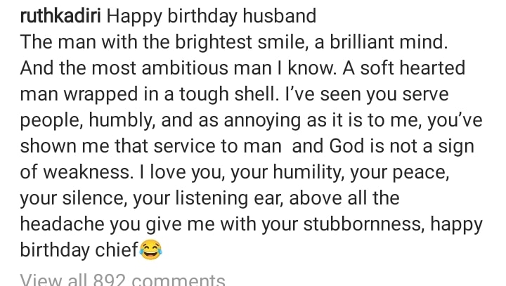 In the heartwarming message she penned to her husband, she stated that she loves his humility and peace and has shown her that service to God as well as humanity isn’t a sign of weakness.