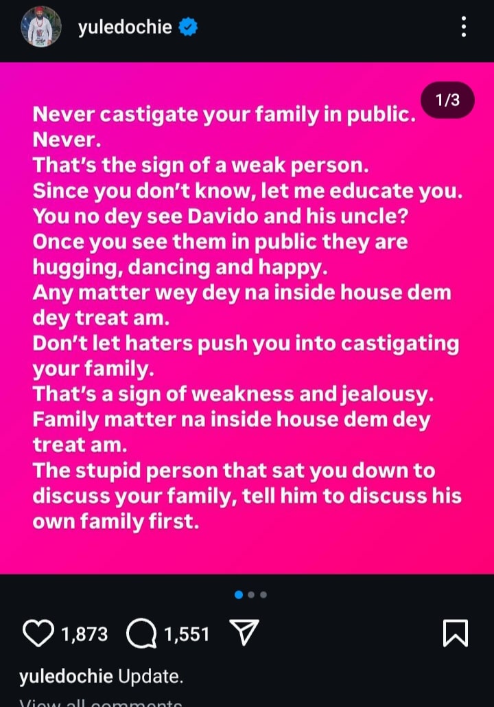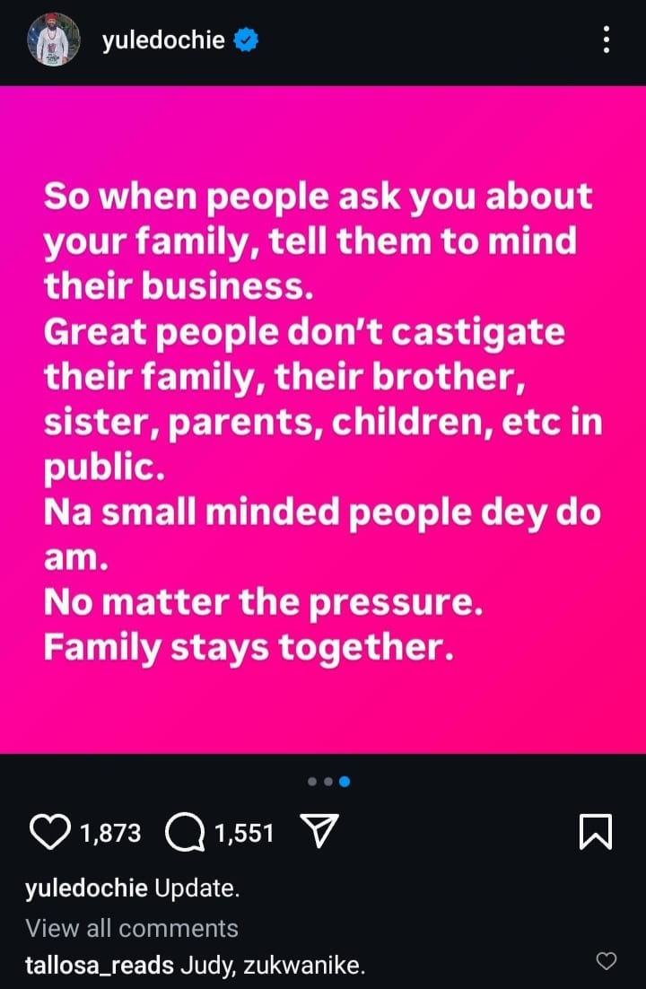 Yul Edochie recently took to his Instagram page to berate his brother for speaking about him.