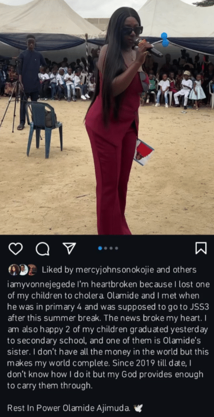 In her post, Jegede also shared a bittersweet update on the achievements of the two other children she supports, who recently graduated from secondary school.