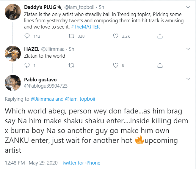 Nigerian music star Zlatan Ibile jumped on a trend #TheMatter on Twitter, and he is about to release a song about different trending topics in Nigeria.
